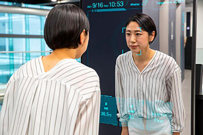 “For instance, the Mirroria can be utilized in offices to monitor the faces and health of people who pass through the entrance,” she explained. “In public transportation, it can display information such as destination details and incident or delay updates. In commercial facilities, it is expected to provide in-facility guidance, offer shop and restaurant recommendations, and even offer cosmetics and fashion advice in stores. Additionally, it is expected to be used for customer service in hotels and providing information in guest rooms.”