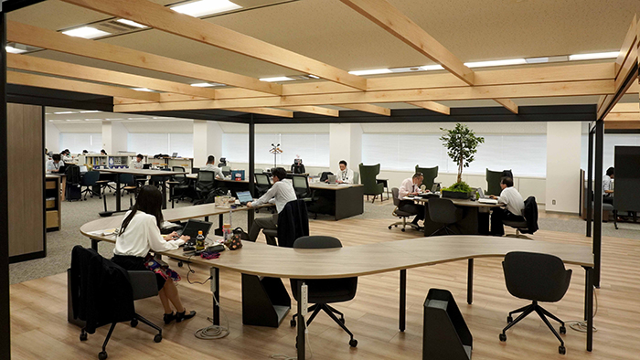 “With the new flexible seating arrangement, we can easily consult with people from other departments, even about minor things. We believe more opportunities for exchanges among workers have invigorated communications across departments,” says Kanai.