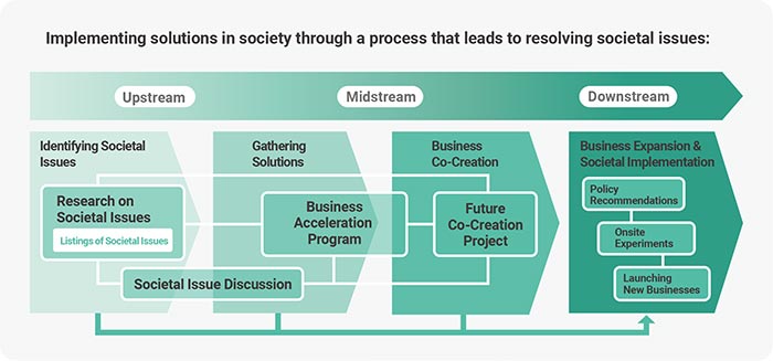 Mitsubishi Research Institute (MRI) runs the Initiative for Co-Creating the Future (ICF), a platform that promotes co-creation activities to resolve societal issues through open innovation and business. The Listings of Societal Issues identifies, analyzes, organizes, and explains critical societal issues, which also form the starting point of ICF's activities.