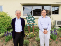 【画像】「えんがわハウス」の前で横田代表理事(右)と。