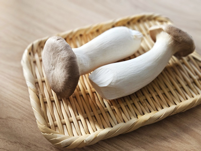 エリンギは軸が太くて白く、弾力があるもの。かさは薄茶色でハリがあるものが鮮度の高い証拠。出荷されてから日浅で鮮度が高いものを選びたいので、パック内に水分が付着していないものが買いです。
