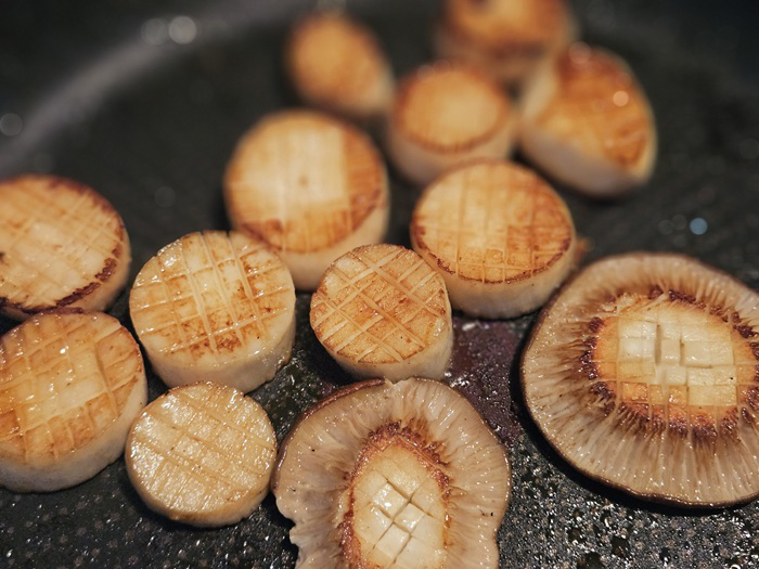 ☑エリンギをホタテに見立てた、満足感が高くジューシーな一品。