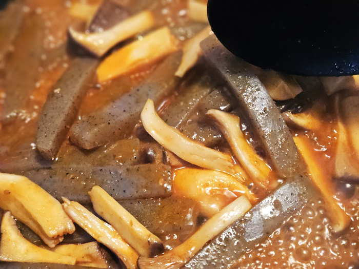 ☑お餅ではなくエリンギとこんにゃくで、トッポギ風な見た目&味付けに。