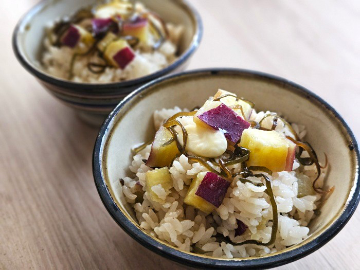 さつまいもと塩昆布の炊き込みご飯