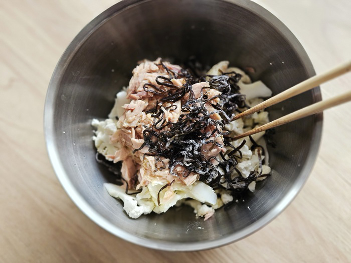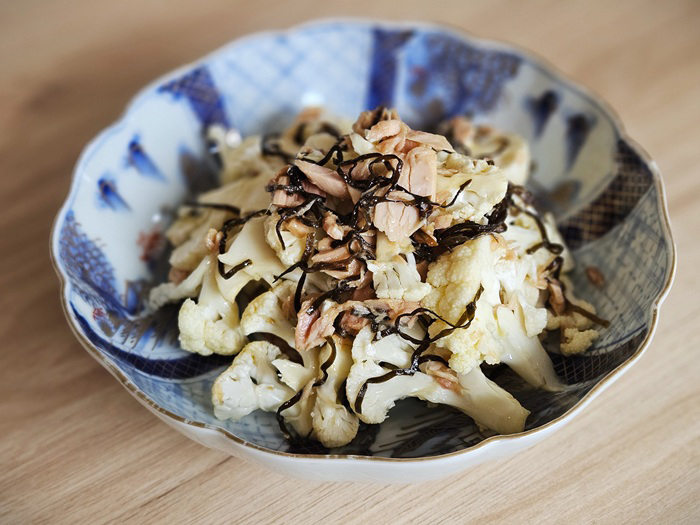 生カリフラワーの塩昆布ツナサラダ