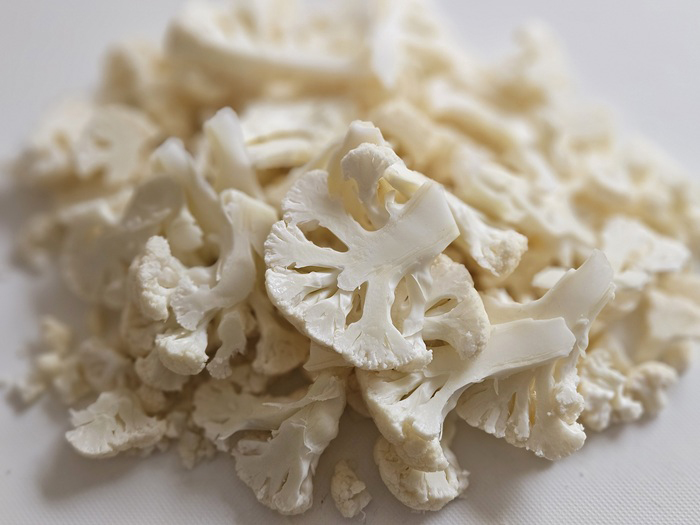 ① カリフラワーは小房に切り、さらに2~3mm幅に切る。