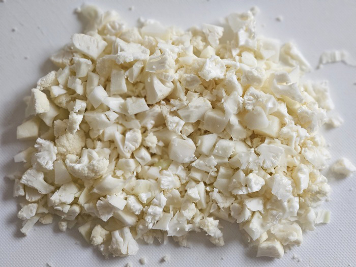 ① カリフラワーは粗めのみじん切りに(粗すぎると餃子の皮が破れやすくなるので注意)。
