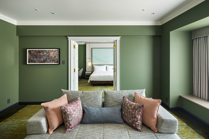 グリーンを基調とし、落ち着きを纏った洗練された客室は総数1000室を超えるスケールで、部屋のカテゴリも豊富。予算に応じて選べるのも使い勝手がいい。さらに館内には約20のレストラン・バー、ショッピングアーケードもあり、ホテル内で旅が完結できるのも魅力。