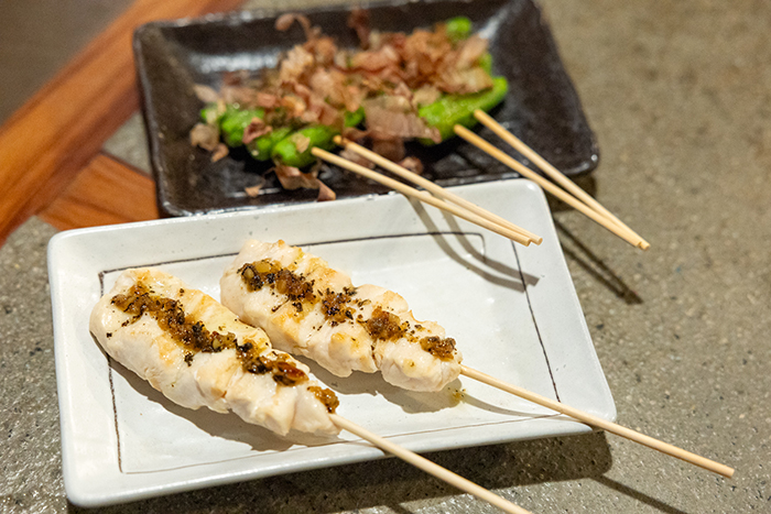 炭火でじっくり焼き上げたささみは中がしっとり、レア寄りに仕上がっている