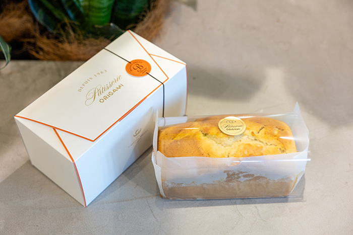 手土産に便利なバナナブレッド(1,800円)は、1963年「ORIGAMI」創業以来、愛され続けている味。完熟バナナを2本使用し、きめの細かいしっとりとした生地は口どけが良く、バナナの風味をしっかりと感じられる。バターを一切使用しない製法も40年以上変わらず受け継がれている。「個人向けの手土産として高過ぎず、安過ぎず、ちょうどいい金額だと言われています」(舟橋さん)。購入はWEB予約のみ。かつては地階にあったが、今はザ・キャピトルホテル東急「ORIGAMI」内で購入できる。営業時間は11:00~21:00。ちなみにオールデイダイニングの「ORIGAMI」は政治家御用達で有名。