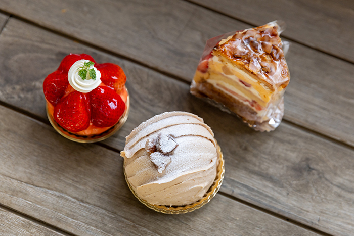 左から「いちごのタルト」「マロングラッセ」「ミルフィーユ」