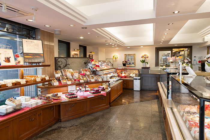 地元の老舗洋菓子店で、ひっきりなしに女性のお客さまが訪れる。「ドイツ系の洋菓子店で、岡山に帰省した人達は皆が買いに来ると言われるほど地元の人気店です。いちごのショートケーキやミルフィーユもおいしいです」(秋光さん)。イートインはなく、テイクアウトのみ。人気のいちごタルト、マロングラッセ(共に650円)、ミルフィーユ(630円)。営業時間は10:00 - 19:00。月曜定休。