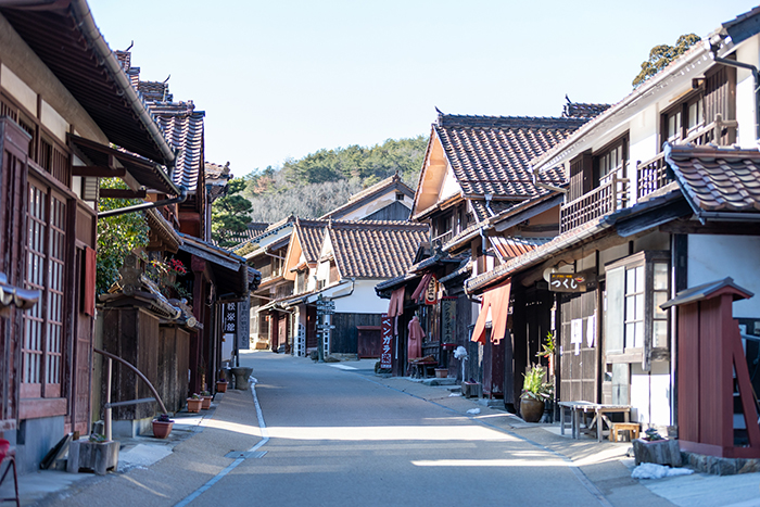 岡山に来たら、レンタカーで吉岡銅山まで足を伸ばしてみよう、こちらも三菱ゆかりの地だ。江戸から明治・大正時代にかけて栄えた吉岡銅山は、別子や足尾と並ぶ日本三大銅山の1つ。江戸時代前期に住友の泉屋吉左衛門が経営し、西日本有数の銅山に成長した。明治に入り岩崎彌太郎が買収し、巨大な資本力と近代西洋技術の導入により、国内屈指の銅山となった。吉岡銅山は三菱が手掛けた最初の金属鉱山であり、その後の全国の鉱山開発の規範となった。吉岡銅山は住友・三菱が関わったことで、2007年に経済産業省が選定する近代化産業遺産に登録された。銅山の周辺にある「吹屋」地区は赤い顔料「弁柄(べんがら)」と鉱山で栄え、赤褐色の瓦で覆われた屋根に格子や外壁も弁柄で塗られた家々が立ち並ぶ「赤い町並み」が広がる。全国でも珍しい景観として「吹屋ふるさと村」には春の時期に多くの観光客が訪れている。地元の神社の鳥居には三菱のマークが付けられている。