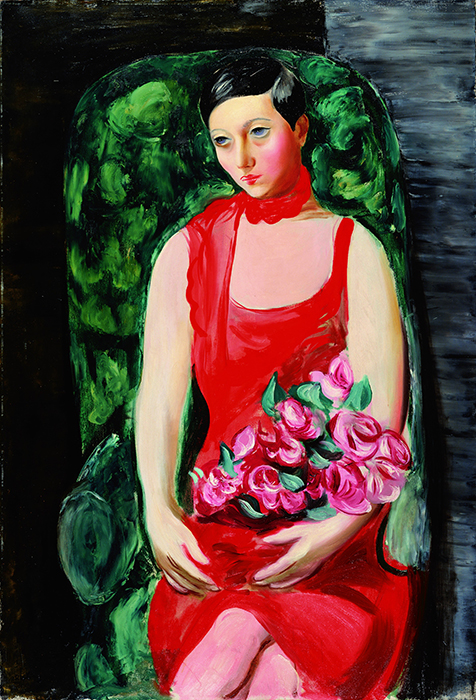 パリの大衆演劇舞台女優ルネ・ファルコネッティを描いたキスリングの作品からは、当時最新のデザインをうかがい知ることができる。