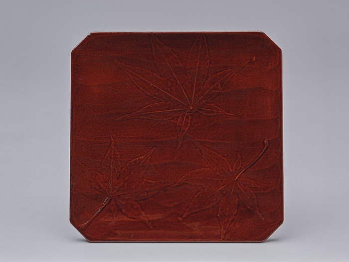 「溜塗紅葉張交銘々盆」 飛来一閑