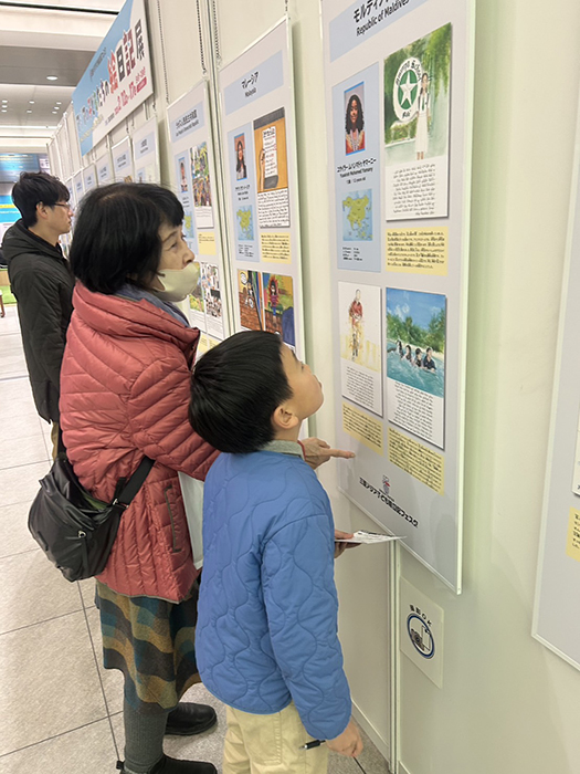 会場となった広島駅北口1階コンコースのイベント広場は、平日は通勤・通学の人々、週末は親子連れでにぎわう場所である。色鮮やかに生き生きと各国の文化や日常を描いた絵日記に、多くの来場者が足を止め、見入っていた。