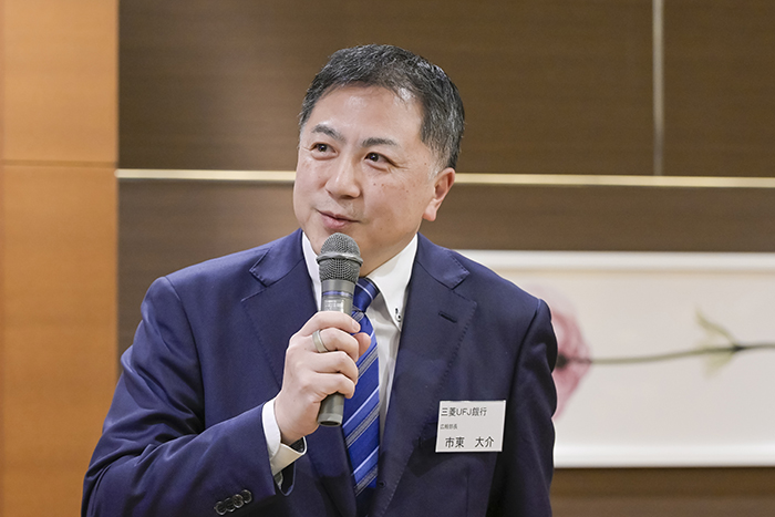 開会の挨拶をする市東大介三菱UFJ銀行 広報部長