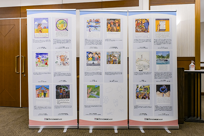 会場では、2025年7月に大阪・関西万博会場で実施された「2024-2025三菱アジア子ども絵日記フェスタ(第16期グランプリ受賞者交流プログラム)」の映像や、国際園芸博覧会の紹介映像が上映された。