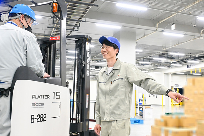 「コロナ禍のときは、スタッフがもしコロナに感染してしまうと、医薬品の安定供給に影響を与えてしまいかねないため、感染対策にはかなり気を使いました。毎月、スタッフへの教育訓練があり、医薬品の品質を担保するため作業方法や衛生面、災害時の対応などについてレクチャーし、スキルアップを図っています。茨木第二営業所は医薬品に特化した倉庫ということもあり、みんな医薬品の取り扱いに詳しい。慎重かつ丁寧に仕事をしているため、とても穏やかな雰囲気ですね」