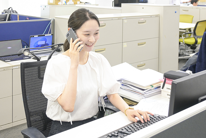 営業グループ営業チームの小林真白さんは2025年4月に入社したばかり。現在は研修期間が続くが、覚えることばかりで、どんな仕事も新鮮で面白いという。
