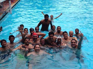 インドのコルカタで水球を楽しむ筑本社長(一番手前)