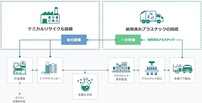 製造されたリサイクル生成油は、石油精製設備やナフサクラッカーの原料として使用される。石油製品や各種化学品・プラスチックへの再製品化を通じて、サーキュラーエコノミーの実現を図っていく。また、同設備は持続可能な製品の国際的な認証制度のひとつであるISCC PLUS認証の取得も完了している。
