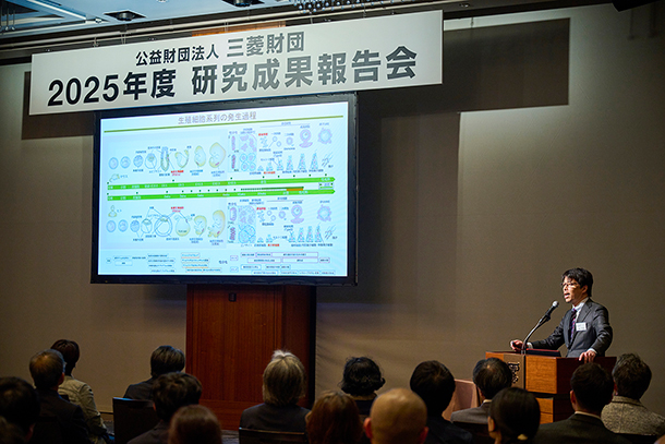 三菱財団は1969年の設立以来、累計約5,300件・224億円の助成を行っており、2025年度は自然科学・人文科学・社会福祉・文化財保存修復の4分野で186件・7億5,500万円の助成が行われます。その受領者が一堂に会する「助成金贈呈式・研究成果報告会」は、三菱財団の設立記念日である9月11日に行われる恒例行事です。今年も、助成金受領者と来賓、選考委員、財団役員が出席し、2022年度に行った助成の研究成果報告会、2025年度の助成金贈呈式、そして懇親会の3部構成により執り行われました。