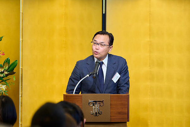 自然科学研究、人文科学研究、社会福祉事業・研究、文化財保存修復事業の各選考委員長より審査報告があったのち、理事長より贈呈書の授与が行われました。その後の助成金受領者の代表挨拶で各分野の代表者は助成金に対する感謝を述べるとともに、研究および事業を通じた社会貢献への決意を新たにしました。