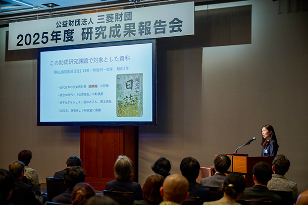 東京都千代田区丸の内の東京會舘で2025年9月11日に行われた公益財団法人 三菱財団主催「2025年度研究成果報告会」。今回は2022年に助成を受けた2名の研究者が研究成果を報告しました。自然科学研究分野から林克彦氏、人文科学研究分野から香西豊子氏が登壇し、研究の成果と意義が語られました。