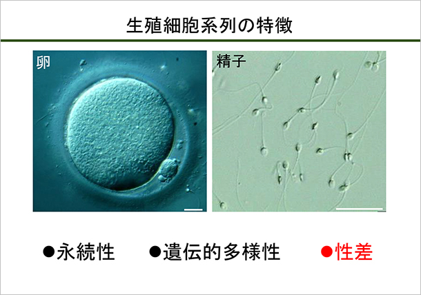 「私の研究対象は卵子、精子といった『生殖細胞』です。体の中には200種類以上の細胞がありますが、次世代に子孫を残せるのは生殖細胞だけです。そしてこの細胞のもうひとつの大きな特徴が『性差』です。もとはほぼ同じ形なのに、卵子や精子になると大きく違ってきます。性差がどのようにできていくのかを調べるのが私の研究です」