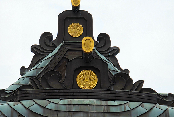 神社の紋には三菱マークが使用されている。