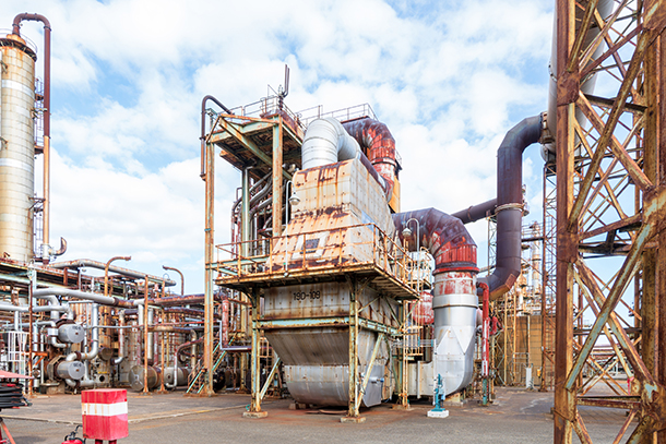 半世紀にわたって石油事業を支えてきた三菱化工機の水素製造機。ここから製油所の各所にある脱硫装置に水素が送られる