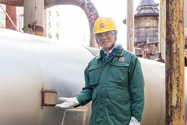 ENEOS根岸製油所の市来健さん。補修プランに従って点検やメンテナンスを毎月行っているという
